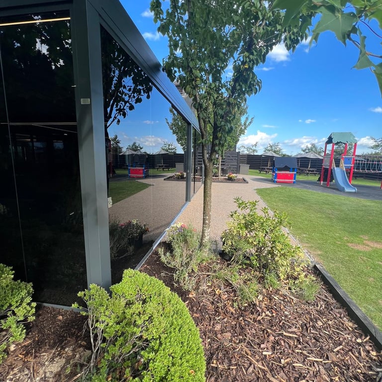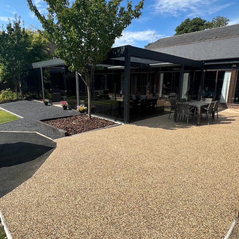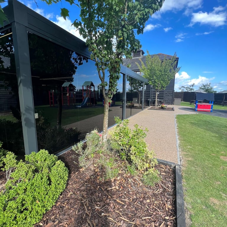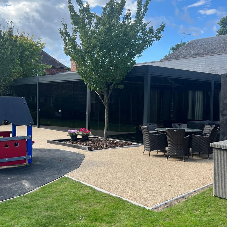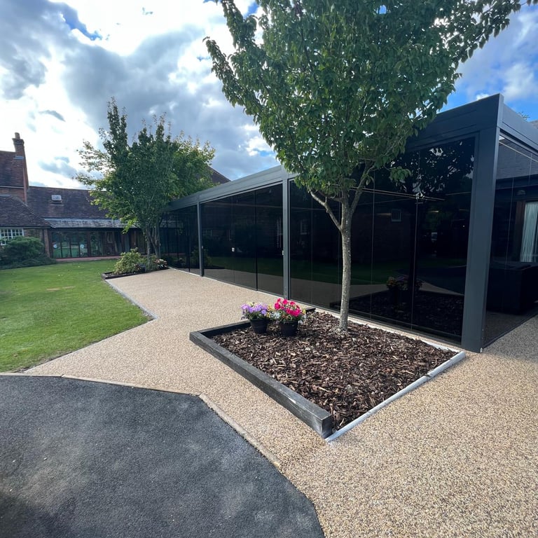 Commercial pergola and resin area